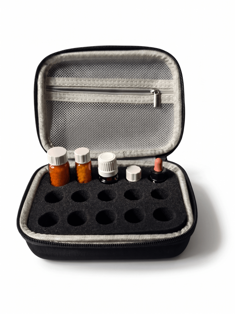 This is a great protective case with it's hard outer shel and foam inner compartment. As seen in the images , many different bottles can be stored in this case . The slimer S5/D5 have some movement when in the inserts but once the case is closed they are secure and will not fall out of there position. Great for everyday use or bringing remedies on holiday .